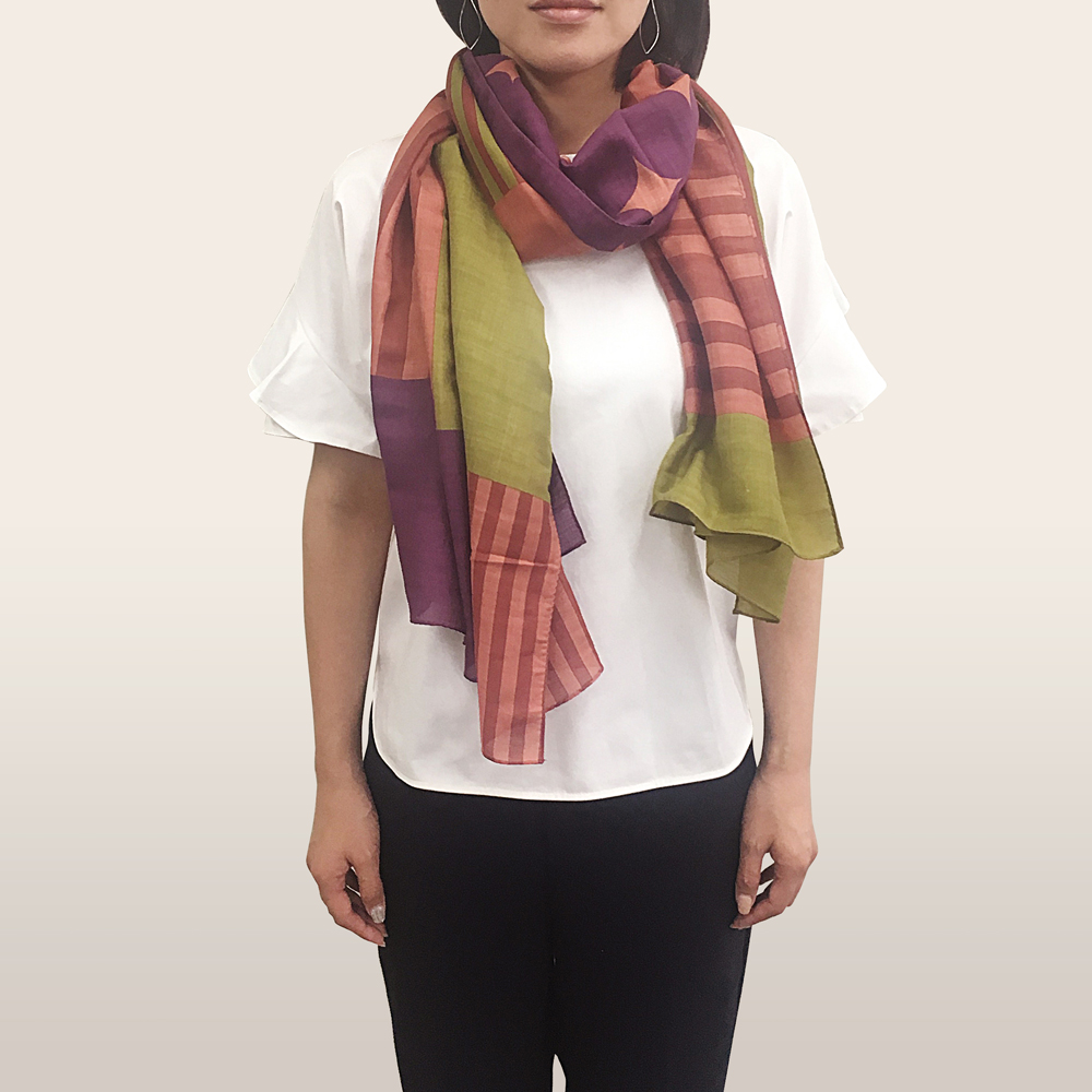 「郡内織ストール&甲州ジュエリークリップセット」のストールは、幅65cm、長さ2m。