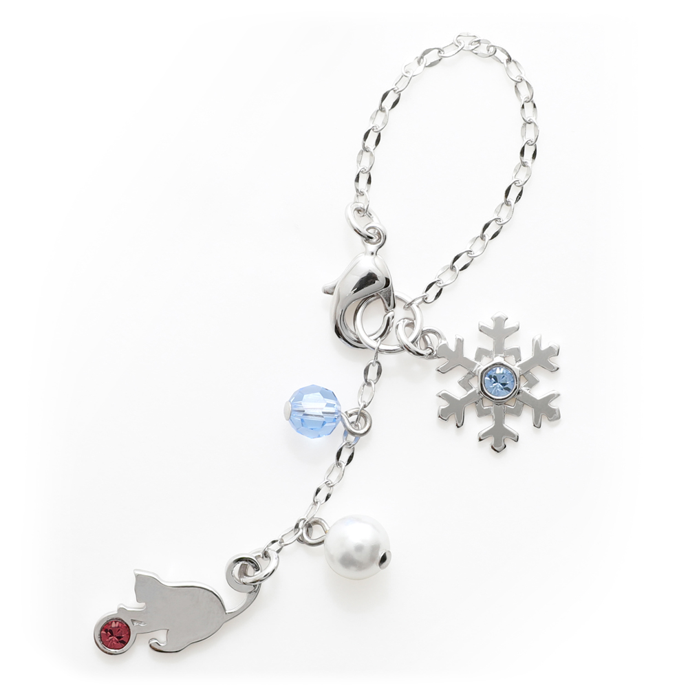 赤い球に夢中になりながらも尻尾をくるんと巻きつけチャームにとどまります。