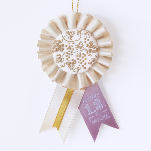 淡い色合いでロゼットの上品な雰囲気にとけ込んでいるので、「山梨の星」が生まれた大切な記念日をさりげなく主張することができちゃいます。