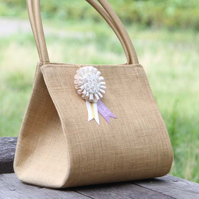 胸元で華やかに存在感を主張するロゼット、こちらをグッズ化したものが今回ご紹介する「冬美旬 甲州印伝ロゼット」です。